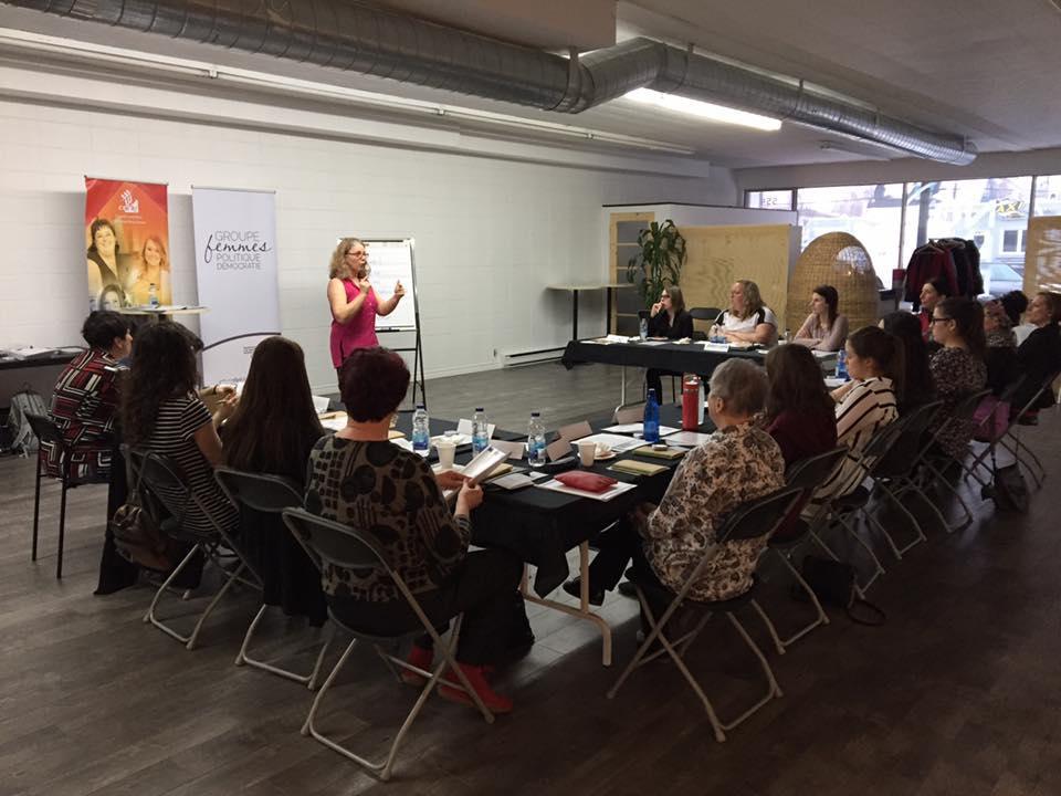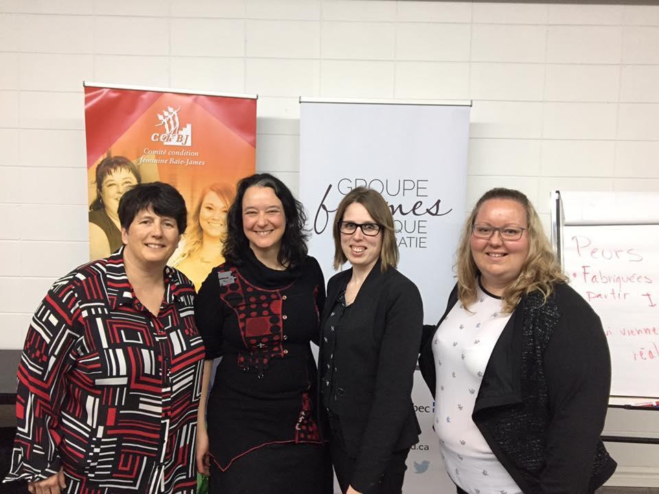 Le colloque s’est tenu les 7 et 8 avril 2017 à Chibougamau. Une vingtaine de Jamésiennes de tous les âges ont pris part à cet évènement. Pendant 2 jours, les participants ont participé à une table ronde traitant des réalités et des défis de l’engagement, à un atelier éclairant sur la manière de négocier sa participation dans les différents lieux de décisions et de pouvoir ainsi qu’à une formation visant à améliorer la confiance en soi.