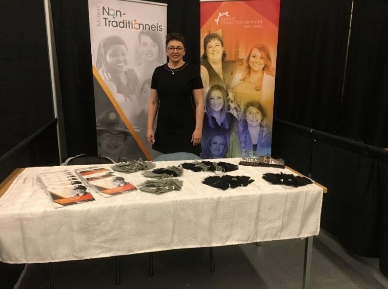 Le CCFBJ y tenait un kiosque, où était faite, entre autres, la promotion du guide sur les métiers non-traditionnels. Cette tribune a aussi permis d’inviter les jeunes filles de secondaire 1 et 2 à envisager une carrière selon leurs intérêts et ambitions, en considérant les métiers dit non-traditionnels comme métiers d’avenir.